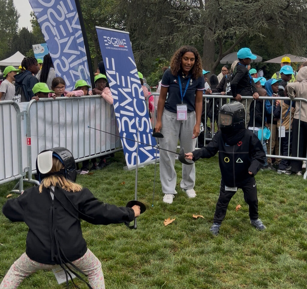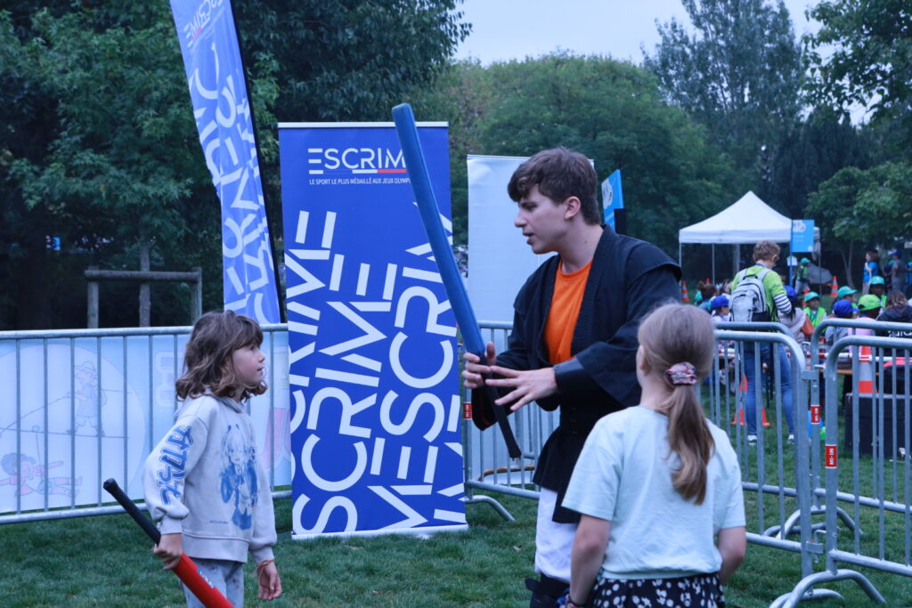 Sur le Champ-de-Mars, transformé en véritable village vacances, la FFE proposait aux enfants des initiations à l’escrime et au sabre laser.Un moment de découverte sportive ludique et enthousiasmant, qui a suscité de grands sourires et beaucoup d’énergie. Les enfants ont pu s’essayer à manier le fleuret ou le sabre laser, encadrés par nos animateurs passionnés.