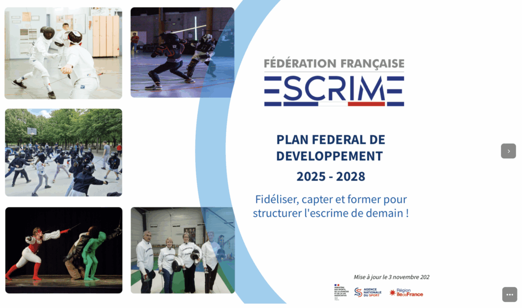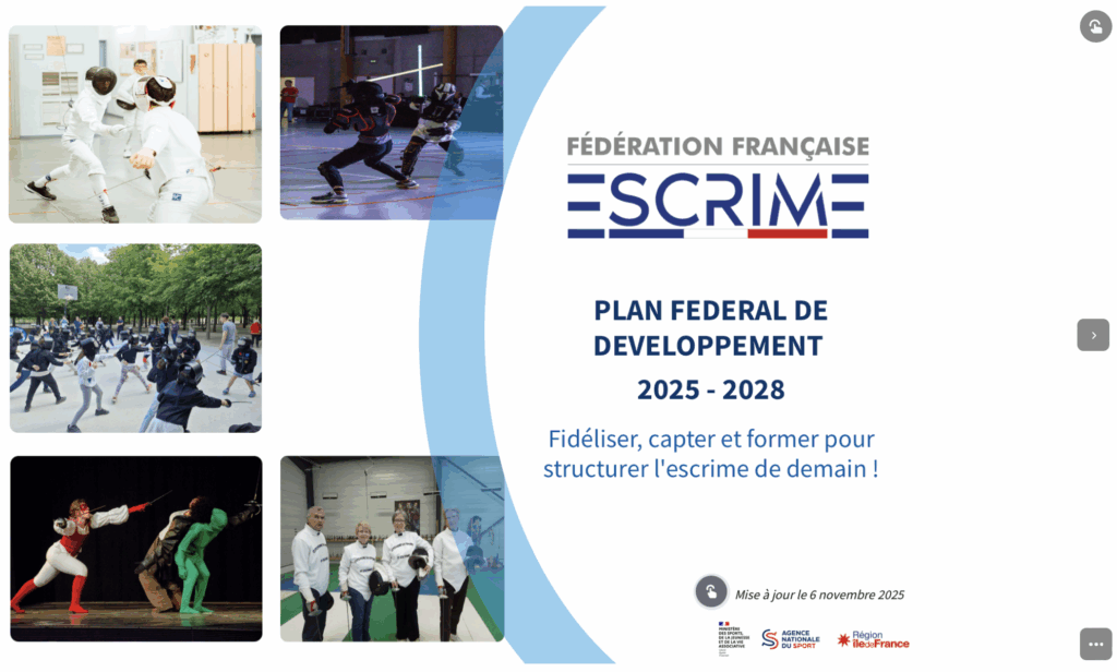 Le nouveau Plan Fédéral de Développement est désormais en ligne.Fruit d’un travail collectif mené avec les clubs, les ligues et l’ensemble des acteurs de terrain, il définit la feuille de route de l’escrime française pour la période 2025-2028.