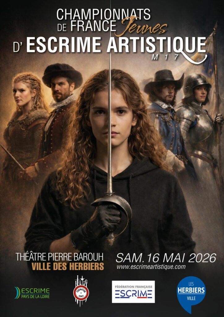 En cette fin d’année, nous avons le plaisir d’annoncer la tenue du Championnat de France d’Escrime Artistique pour la catégorie M17 (M15 surclassés), qui se déroulera le 16 mai 2026 aux Herbiers.