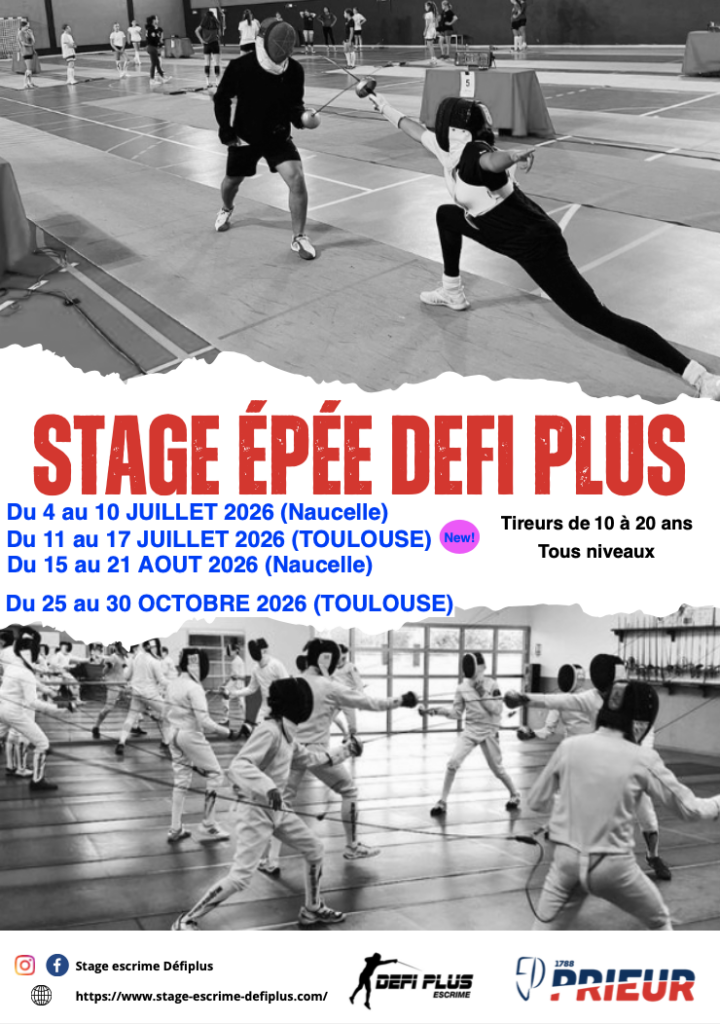 L’association DEFI PLUS ouvre les inscriptions pour ses stages d’été 2026 à l’épée ! Ces stages sont ouverts à tous les jeunes tireurs et se dérouleront dans un cadre sportif et ludique, avec un suivi personnalisé et des activités variées.