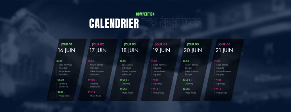 L’élite de l’escrime européenne sera présente, avec des champions et médaillés internationaux, pour offrir des assauts spectaculaires et un niveau de compétition exceptionnel. Une occasion unique de venir encourager nos athlètes français et de vivre toute l’intensité du sport au plus haut niveau !