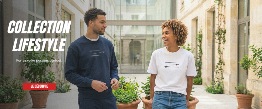 Pensée pour tous les passionnés d’escrime, cette gamme a été imaginée pour accompagner les pratiquants bien au-delà des pistes, en mêlant style, confort et identité sportive.